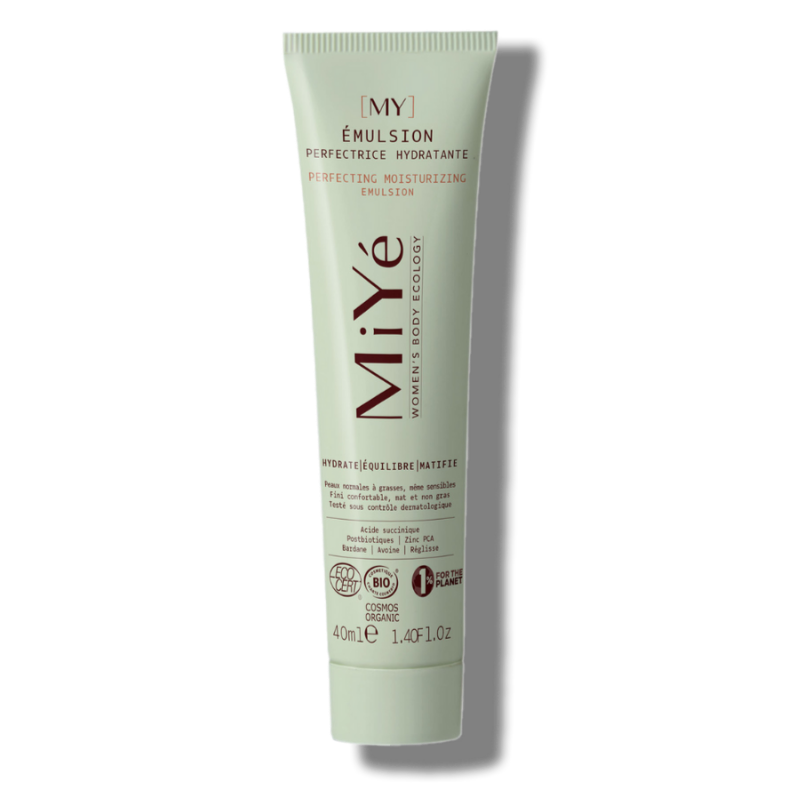 [MY] Moisturizing perfecting emulsion , with a fresh and velvety texture, combines 3 complementary actions: it strengthens the skin's defenses and the skin microbiome, moisturizes, soothes and evens out and mattifies the complexion (anti-redness, anti-shine, pore reduction).
