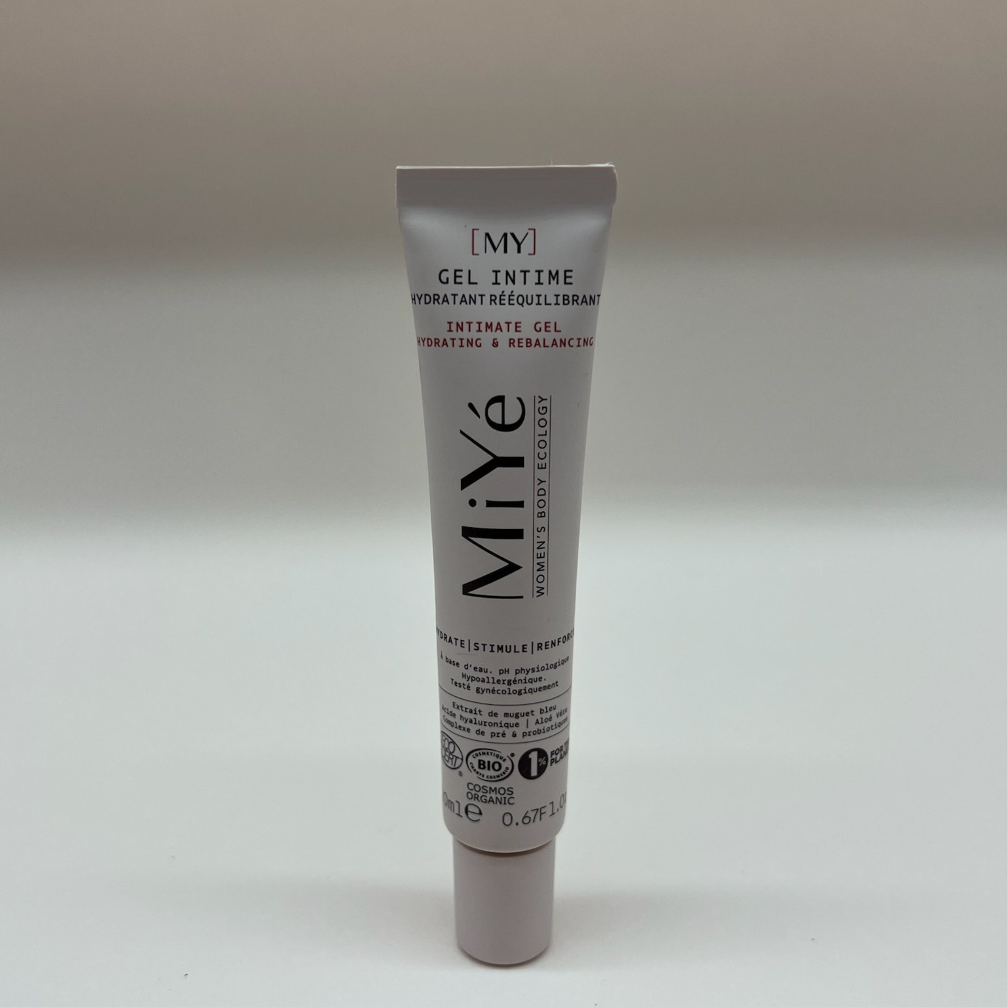- [MY] GEL INTIME HYDRATANT RÉÉQUILIBRANT 20 ML, gel intime BIO et à efficacité prouvée : confort, hydratation, renforcement et stimulation de la zone intime. Pour 15 à 20 applications.